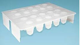 聚乙烯材料,薄的透視的尖端便于樣本包埋時快速的定向;樣本包埋塊可以用拇指輕輕向上頂出;20個管子各自獨立,允許空氣自由流動(不會局部聚集溫度),聚合條件統(tǒng)一;模具設(shè)計嚴密,適合厭氧包埋樹脂的使用,一個支架疊放在另一個有包埋樹脂的支架上方就可以隔絕空氣;模具也可以用來存儲樹脂切片。