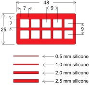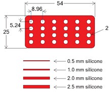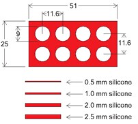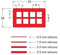 硅膠隔離貼片,又稱硅膠墊密片、試劑壩、硅膠貼封片等??捎糜谕恍酒系亩鄻悠贩磻?yīng),珍貴微量樣品的檢測(cè)等等。隔離片可使加樣更準(zhǔn)確,防止樣品間的交叉反應(yīng),且與配套雜交反應(yīng)蓋片合用還可使加樣更容易,反應(yīng)和雜交更均勻,防止反應(yīng)液揮發(fā),避免空氣中灰塵污染,是各種微陣列芯片進(jìn)行雜交或免疫反應(yīng)的理想輔助工具。該產(chǎn)品可以壓力粘貼,可干凈去除。硅膠屬于惰性材料,對(duì)生物樣品無不良影響,如果用來培養(yǎng)敏感性細(xì)胞,建議選用新型的無色透明的CultureWell硅膠貼片。