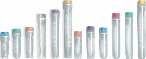 可以用來裝盛生物學樣品、人或動物的細胞等,溫度耐受至-195℃。有白色可書寫區(qū),有配套的有顏色管蓋來區(qū)別不同的樣品。管蓋與管子材質相同,具有相同的膨脹系數(shù)