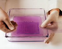 l 薄薄的塑料片易于滑進(jìn)凝膠下面,進(jìn)而托起 gel support