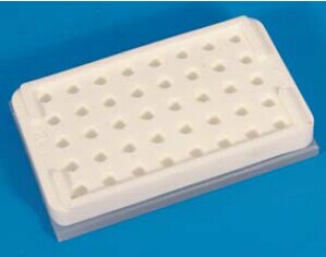 EMS染色盤,硅膠制造,用于電子顯微鏡樣品包埋后的染色和免疫組織化學(xué)操作時,其優(yōu)勢遠勝于現(xiàn)行其他染色裝置?;瘜W(xué)蝕刻過程、抗體孵育和染色都能在EMS染色盤小圓錐孔內(nèi)操作。外尺寸長127.5mm、寬85.5mm、厚11.5mm, 8行12列共96個錐形孔(形狀類似微量滴定板),每個圓錐孔都是直徑7mm的倒錐形,深2mm,銅網(wǎng)漂浮或固定在其底端。圓錐孔能容納12-60µl溶液??捎?span lang="EN-US">Falcon 3072 Microtest™ III 96孔盤做蓋子。