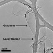 石墨烯,一種只有一個原子厚的二維碳膜,這種新型材料化學性能穩(wěn)定,很難與其他物質(zhì)結合,石墨烯是目前發(fā)現(xiàn)的硬度最大的物質(zhì),有極好的導電和導熱性能,這些性能使得石墨烯極適于制作電鏡載網(wǎng)支持膜,為TEM觀測納米粒子提供了極大的方便,對進行納米粒子界面研究者非常有幫助,尤其是納米顆粒較小且附著力較差時可以使用這種特制的電鏡載網(wǎng)。