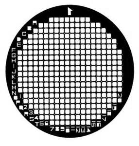 l 200目F2型坐標載網(wǎng):粗的柵條分割出小的區(qū)域,每小區(qū)域內(nèi)是細柵條組成的9個孔,每一區(qū)域?qū)?yīng)一個字母編碼。
