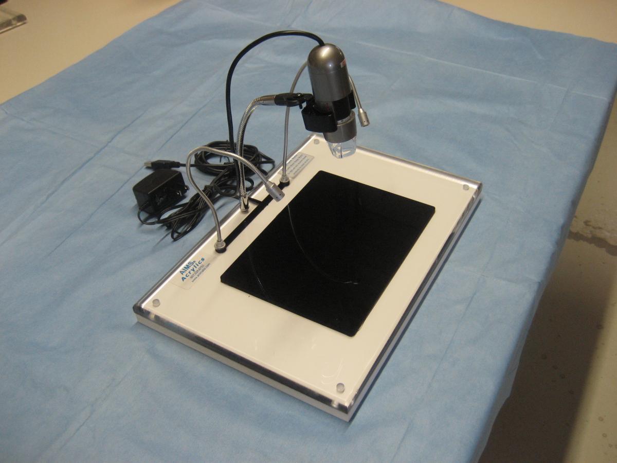 手術(shù)臺上同時配套的其他設(shè)備:兩個LED燈,提供無影照明。放大鏡(主鏡頭2.3x,內(nèi)嵌鏡頭4.0x)輔助視野。