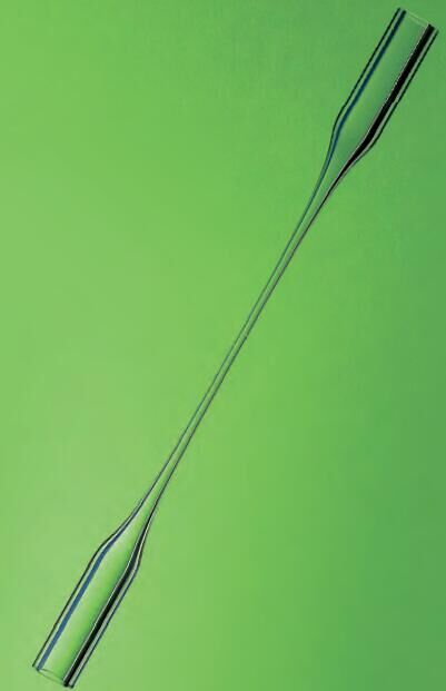 原產(chǎn)德國的雙漏斗薄壁玻璃毛細管,由硼硅玻璃制造(borosilicate glass 3.3),這些特殊的樣品管適合于流體測量。測量段在毛細管中部的壁厚僅為20μm左右,兩端壁較厚,便于安裝液體流動通道。事實證明,薄連接軟管最適合這些毛細管(軟管推薦用軟聚四氟乙烯管)。