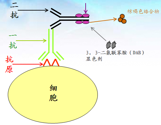 ?? 原理:利用抗原與抗體的特異性結(jié)合原理和特殊的標(biāo)記技術(shù),通過化學(xué)反應(yīng)使標(biāo)記抗體顯色,對組織細(xì)胞內(nèi)的特異性抗原進行定位、定性、定量檢測的一門技術(shù)。