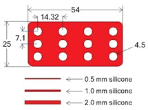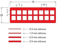 硅膠隔離貼片,又稱硅膠墊密片、試劑壩、硅膠貼封片等??捎糜谕恍酒系亩鄻悠贩磻?yīng),珍貴微量樣品的檢測(cè)等等。隔離片可使加樣更準(zhǔn)確,防止樣品間的交叉反應(yīng),且與配套雜交反應(yīng)蓋片合用還可使加樣更容易,反應(yīng)和雜交更均勻,防止反應(yīng)液揮發(fā),避免空氣中灰塵污染,是各種微陣列芯片進(jìn)行雜交或免疫反應(yīng)的理想輔助工具。該產(chǎn)品可以壓力粘貼,可干凈去除。硅膠屬于惰性材料,對(duì)生物樣品無不良影響,如果用來培養(yǎng)敏感性細(xì)胞,建議選用新型的無色透明的CultureWell硅膠貼片。
